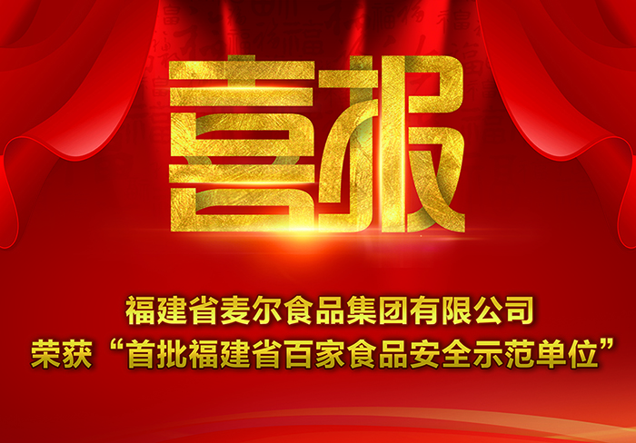 喜報——麥爾食品集團(tuán)有限公司榮獲:首批福建省“百家”食品安全示范單位