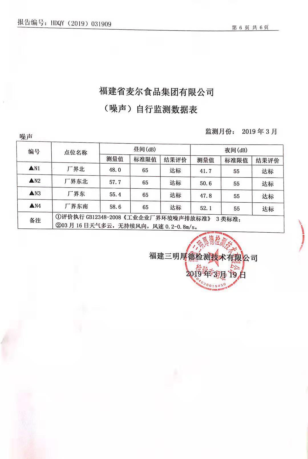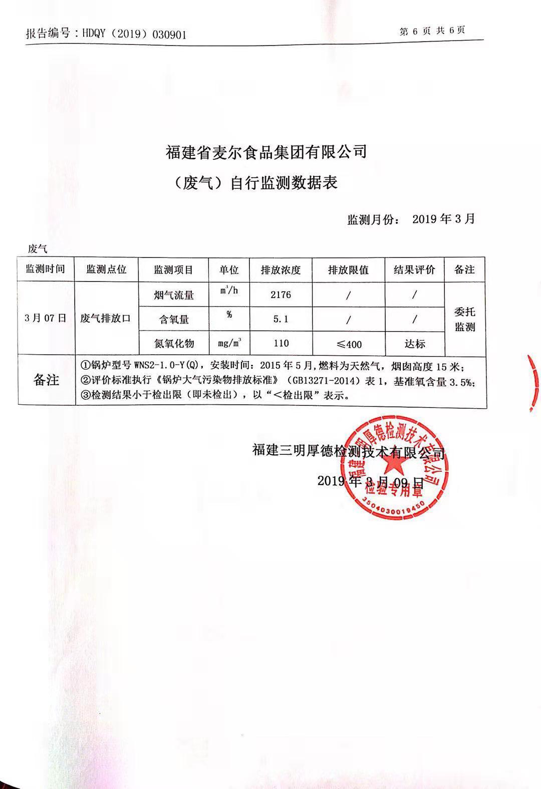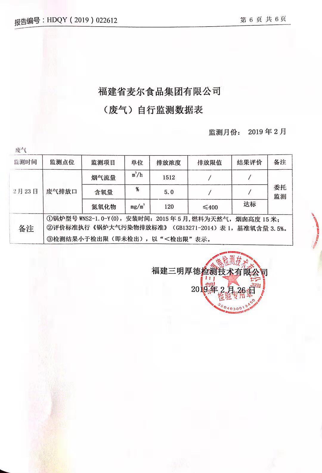2019年麥爾食品集團(tuán)-環(huán)境監(jiān)測報(bào)告公示